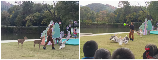 森林深处传来阵阵欢呼声,一场精彩的“森林百老汇”萌宠秀正式上演!驯鹿迈着稳健的步伐登场,鹿角舒展尽显优雅;鹈鹕摇晃着胖乎乎的身体,不时张开大嘴引得孩子们阵阵欢笑;会飞的蓝孔雀一展身手,翅膀舒展间轻盈掠过场地,身姿灵动又矫健;孩子们挥舞着小手与动物互动,用热烈的掌声为这场精彩演出点赞,欢乐的氛围弥漫在整个森林。