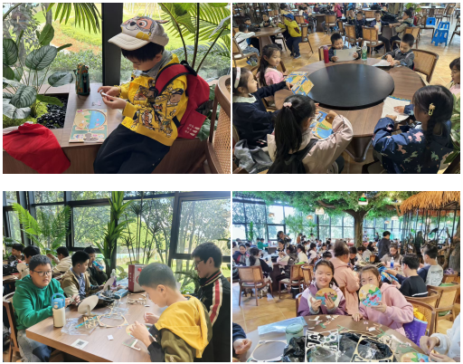 “鹅,鹅,鹅,曲项向天歌”,经典的《咏鹅》诗句在森林中回荡。在“森林诗工坊”,孩子们化身“小小创意家”,围绕“咏鹅”主题用装饰贴纸装点竹盘。一个个色彩明快、充满创意的竹盘作品新鲜出炉,孩子们捧着自己的创作,脸上洋溢着满满的成就感。